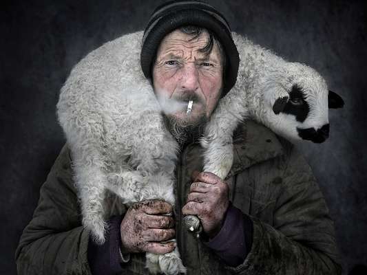 Shepherd and lamb